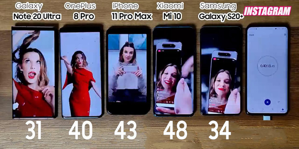 手机续航变得越来越重要,但由于智能手机屏幕、电池容量、处理器都不一样,因此耗电程度也不一样,续航也会有差距。如今这里有5款热门手机,从左到右分别是三星Note20Ultra、一加8Pro、iPhone11ProMax、小米10、三星S20+。除苹果外,其他4款旗舰机都是今年发布的,同时还支持90Hz或120Hz刷新率。不过这次测试将屏幕刷新率都设置成60Hz,那么续航差距有多大呢?