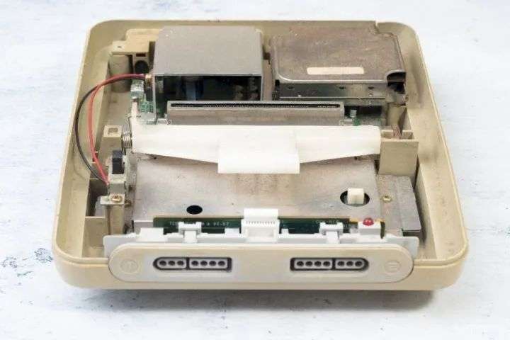 第二点, 是这一款居然是独立声卡版本!在右上角的组件可以拆卸,这是因为这一款是首发初版,也就是SFC最初的版本。当然,实际上从编号也可以看出来,独立声卡初版是S1开头,S2是第二版,SM是集成度极高的版本,而末期版本则是最后期的SFC JR廉价版。