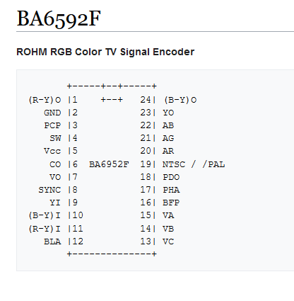 这样的一块编码器芯片就负责了信号输出前的编码,看起来还能通过引脚设置PAL或者NTSC格式。
