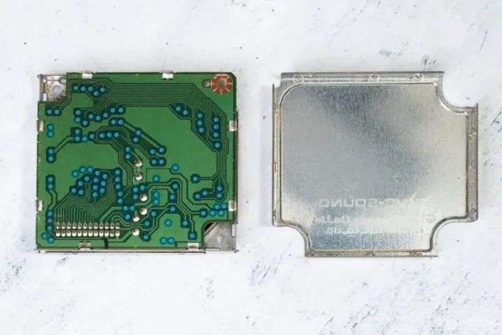 下部分金属屏蔽壳被焊锡稳健的固定在PCB上面,这也是为了屏蔽外部电源的干扰和其他零部件的干涉作用,以及减少天线效应。