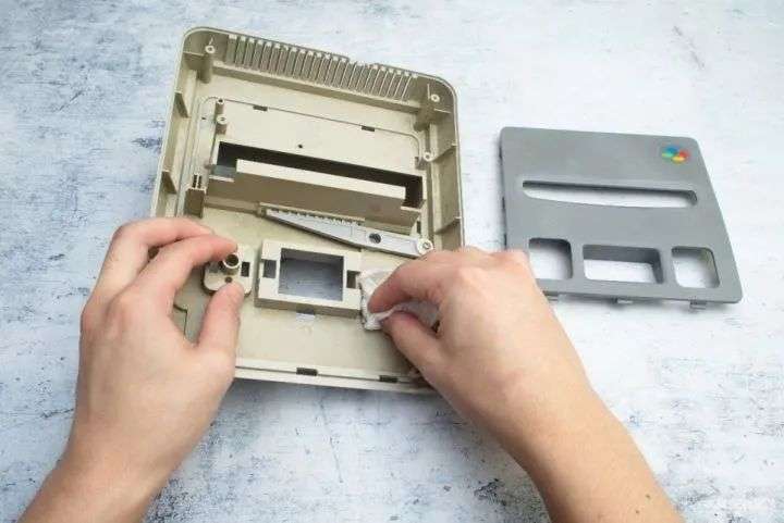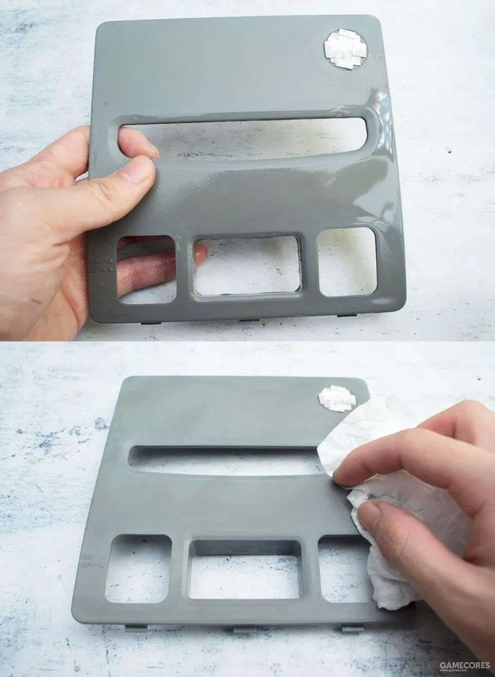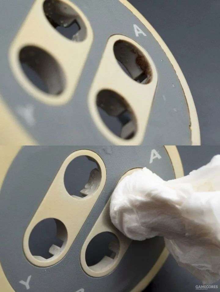 完成清理后需要对外壳进行翻新,不得不说更高浓度的过氧化氢,在效率上高了很多,上壳和下壳本来一样黄,下壳我提前进行去黄处理,结果半小时后再去看就基本还原成白色了。