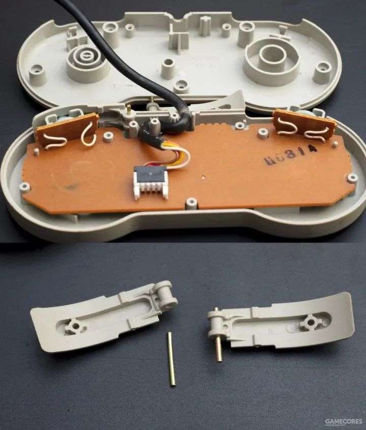 打开手柄后,把两个肩键先卸下来,虽然有肩键但是同期的游戏并没有几个用上。