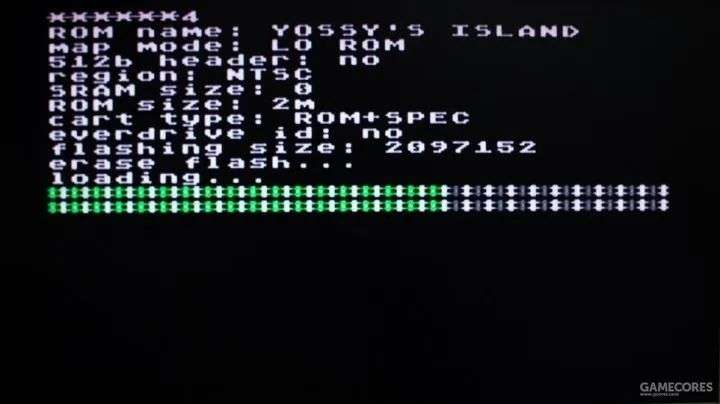 选择游戏后,烧录卡会先把提供给SFC读写的ROM擦除,然后把SD卡上的文件烧录到ROM,相当于是进行一次仿真。