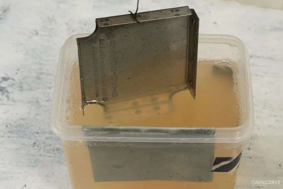 因为上表面太黄了,我额外配置了特殊的溶液——有着40%左右浓度的工业过氧化氢,它呈现出一种水红色而不是药店卖的3%的那种无色,当然我如果配置10%左右也是无色。