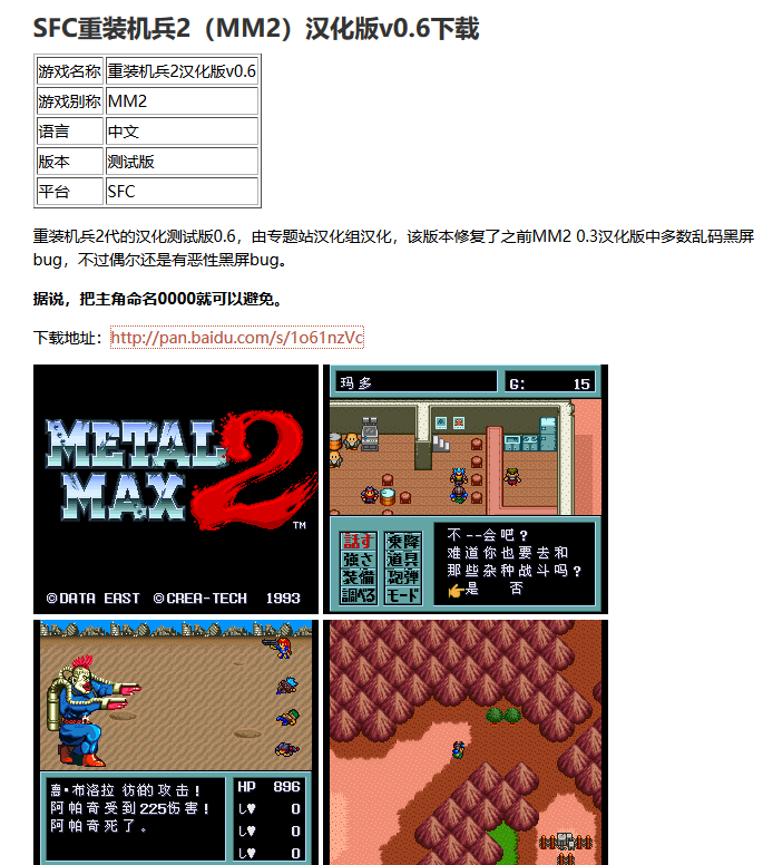 有一些经典的作品,即使放在现在也是依然给人以一种兴奋感,我个人非常喜欢《重装机兵》系列作品,但很遗憾试了一下在烧录卡上并不能正常的运行。