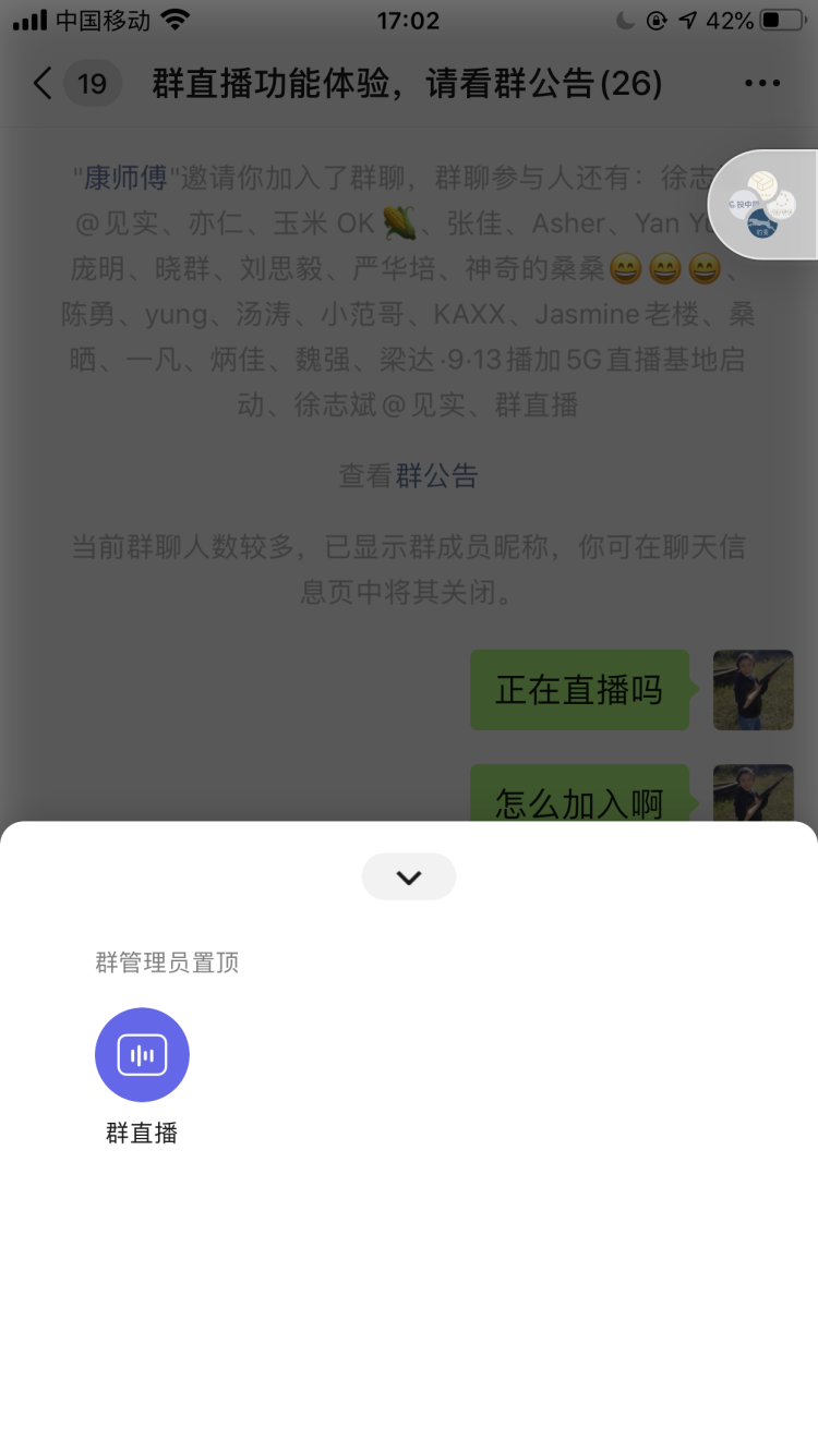 而进入一个正在直播的群,也会有第一时间的显眼通知。