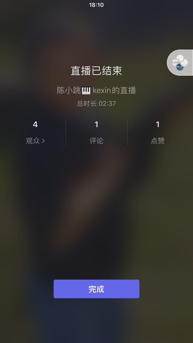 开始直播后,直播链接会自动发送至直播群聊,无法分享到别的群和朋友圈。直播时,主播方可以实时看到时长、点赞人数、观看人数、滚动评论,前后镜头可以互相切换,和微信视频一样,点击右上角的最小化,能够浏览别的聊天界面,并继续直播。右下角有连麦功能图标,但下午多次使用时,均连麦失败,可能存在bug。