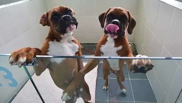 韩国秀岩生实验室设施内,克隆拳师犬相互拥挤争夺人的注意力