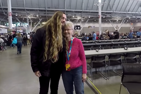 库里奶奶与另一位名叫Camelworks的YouTuber合影。图片摄于在波士顿举行的Pax East游戏展。图片来源:YouTube