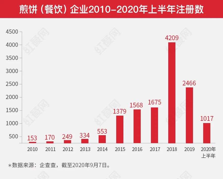△煎饼(餐饮)企业2010-2020年上半年注册数