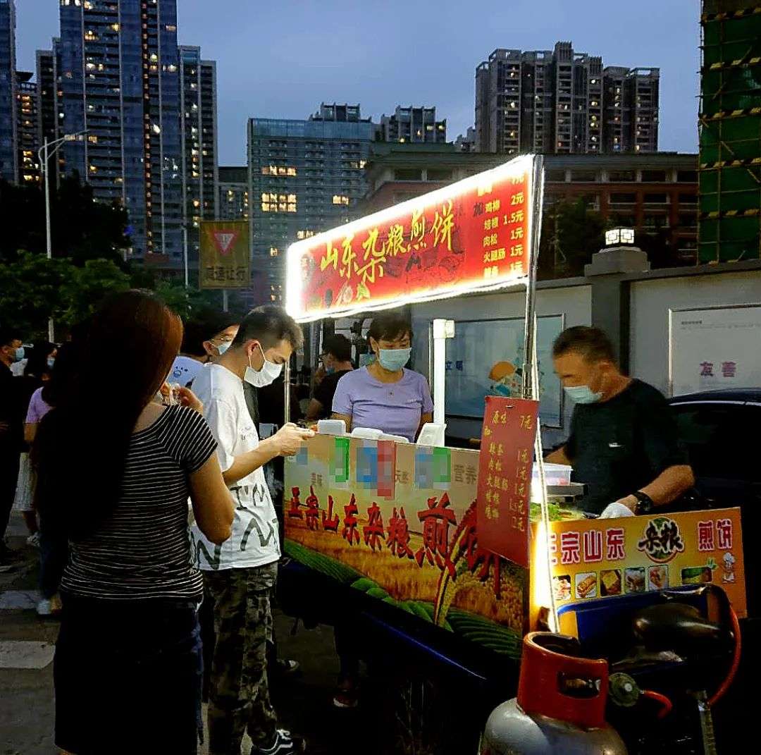在一些社区或写字楼周围,早餐或者宵夜时段,煎饼摊的最多的一类流动摊贩,有时一条街能有五六个。