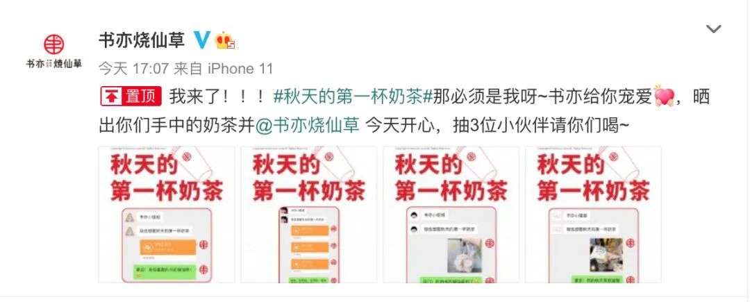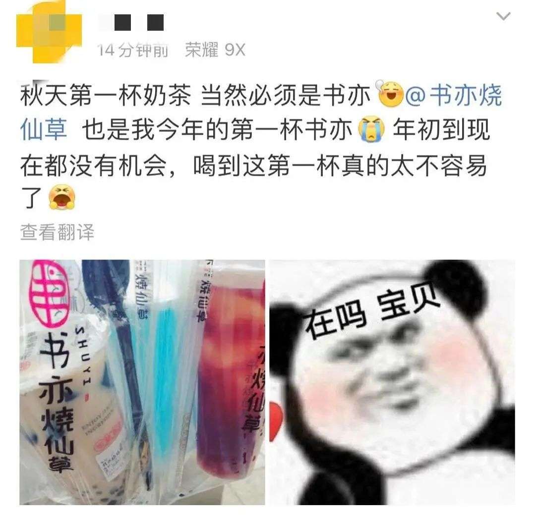 这一数据和朋友圈、微博的反馈比较一致。昨天“秋天的第一杯奶茶”刷屏时,许多人晒的都是书亦烧仙草。