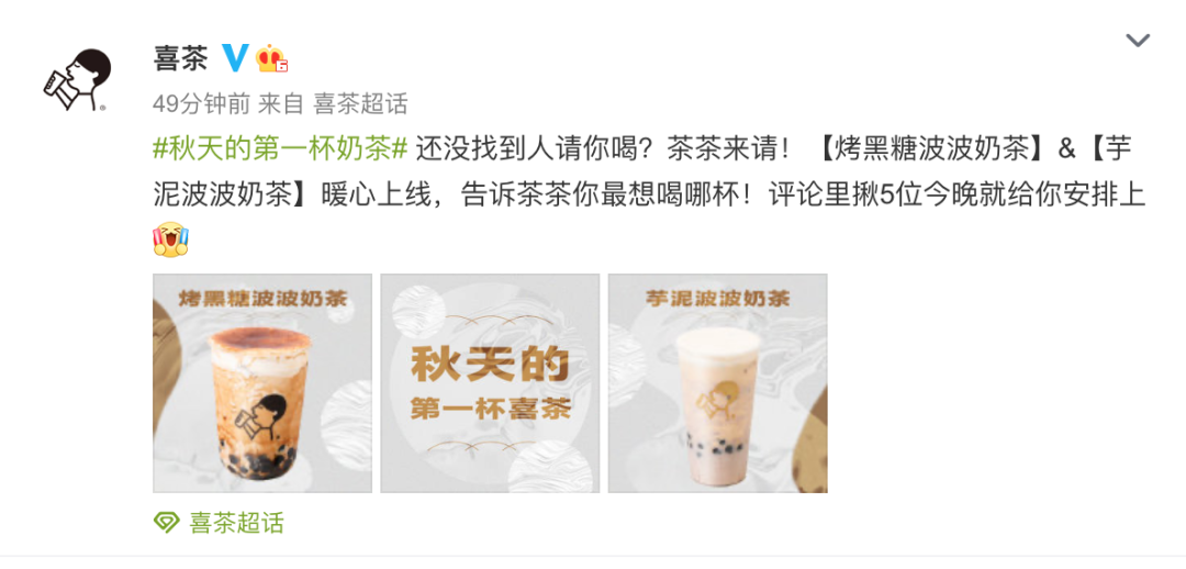 既然消费者已经主动提出要喝“秋天第一杯奶茶”,干脆就满足吧——这也许是秋季限定的一个方向。