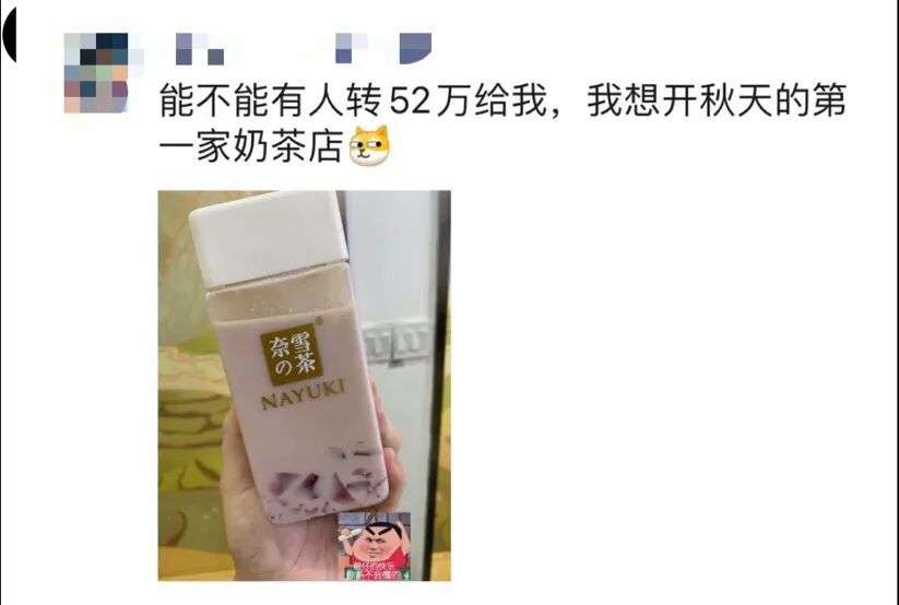 这个梗一开始是有人在微信给对方上发“秋天的第一杯奶茶”,对方二话不说,发来一个52元红包,意思“拿去卖奶茶喝吧”。