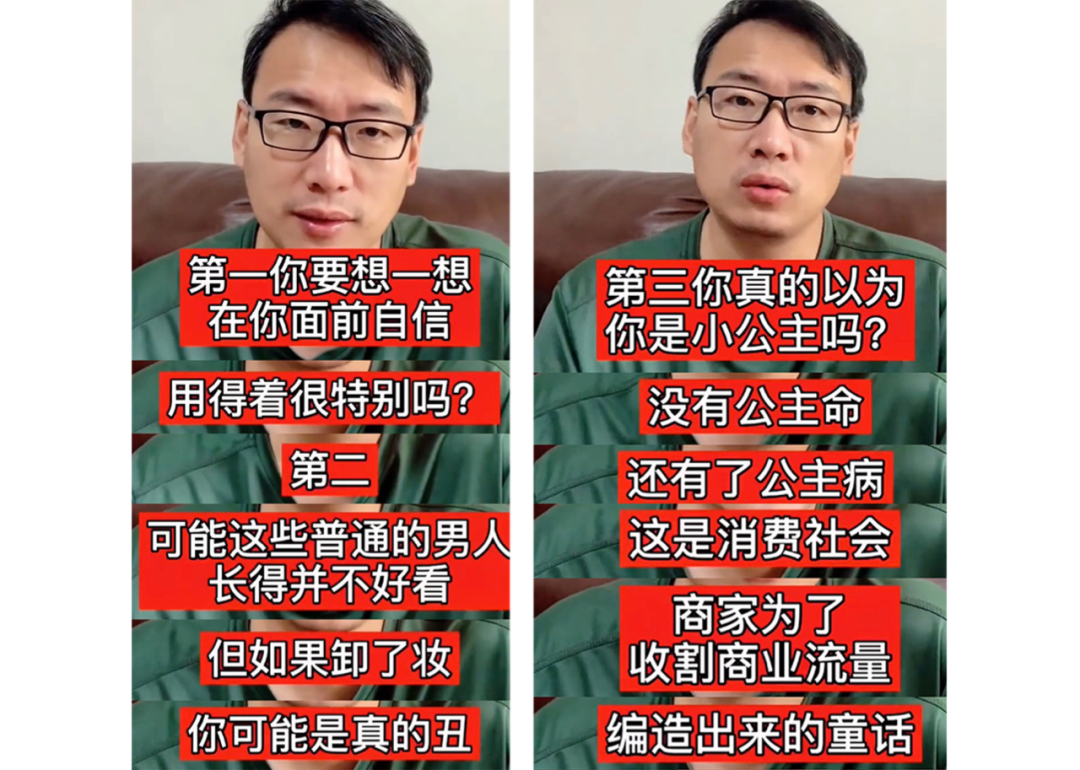 这番对于直男盲目自信的精准吐槽在互联网上广为流传,引起不少网友深深共鸣的同时,也引起了一番争议。一周之前,国际关系学院教授、奇葩说辩手储殷发布短视频,指责持此观点的杨笠们不如男性理智,“是被商业社会洗脑的韭菜”,更以“如果卸了妆,你可能是真的丑”对屏幕前的女性观众进行外貌攻击,毫无逻辑与风度。