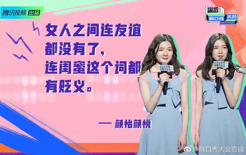 颜怡颜悦则一改上一季中内容散漫的毛病,每次只讲一个主题,例如结合bm风盛行探讨女性身材焦虑,站在双胞胎的独特视角讲述被催婚的经历,在文本中不断地进行着价值观输出。在表演中,她们还设计了更多适合双人共同呈现的肢体动作,不再像从前那般拘谨,充分发挥出了“比别人多一个人”的独特优势。