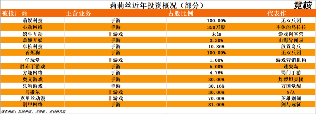 除此之外,近年来莉莉丝投资的游戏厂商还有心动网络、萌娱科技、香蕉狗、胖布丁游戏、方趣网络、奥义游戏、荆甲网络等。其中,荆甲网络即是《剑与远征》的开发团队。