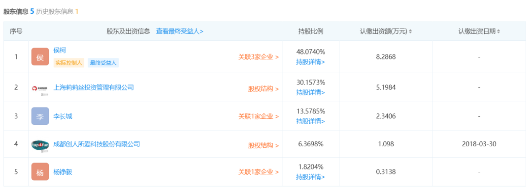 从乐狗目前的股权分布来看,创始人侯柯控股48.07%为第一股东,而后便是莉莉丝占股30.16%,牢牢占据第二股东之位。