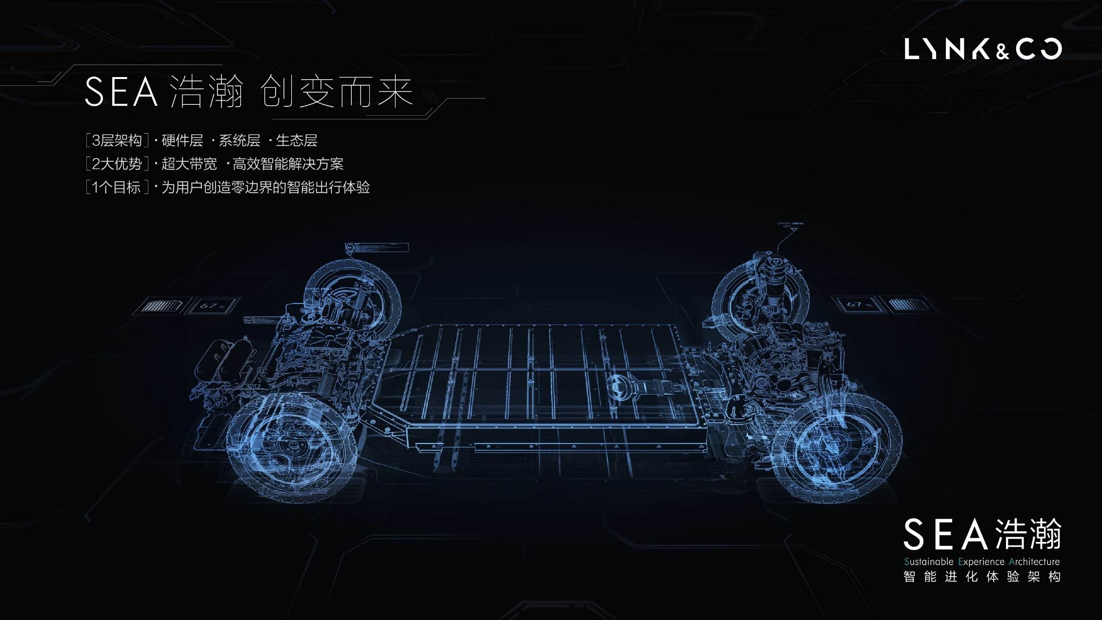 在空间上,浩瀚架构拥有世界最大带宽,轴距带宽为1800mm-3300mm,实现了从A级车到E级车的全尺寸覆盖,可以满足轿车、SUV、MPV、小型城市车、跑车、皮卡及未来出行车辆等全部造型需求。