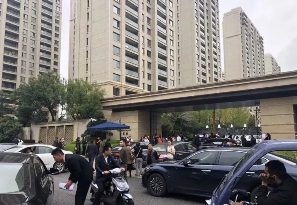 开盘的当天里里外外都是人,连地下车库都排起了长龙。