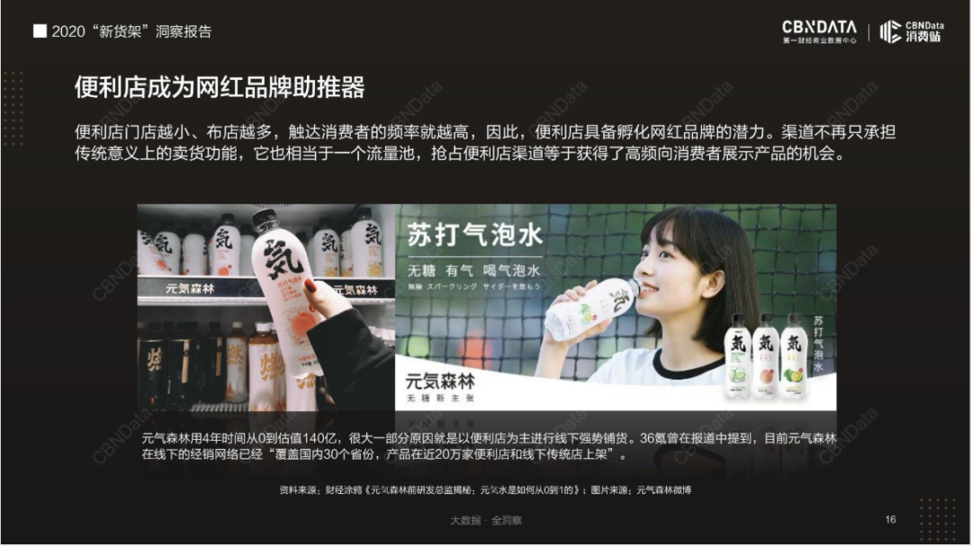 元气森林用便利店和小超市来连接消费者,在经过1年半的线下积累后,规模和知名度都得到了极大提升。
