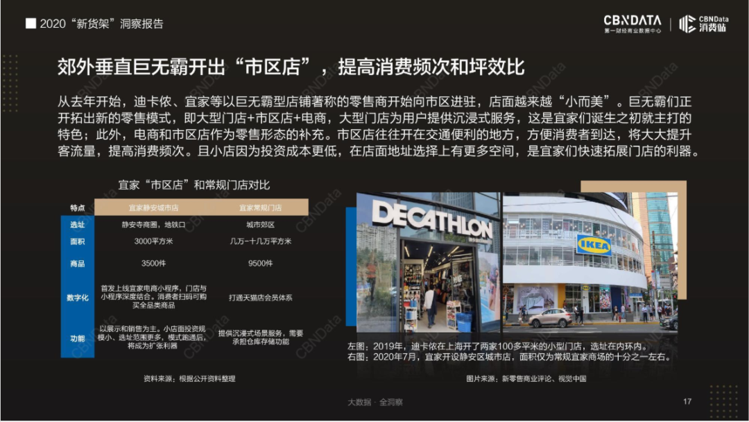 第二个“新货架”是“市区店”。今年7月,宜家在静安区开了一家3000平方米的“市区店”,规模仅为常规门店的十分之一。去年,迪卡侬也在上海内环内开了两家小型市区门店。