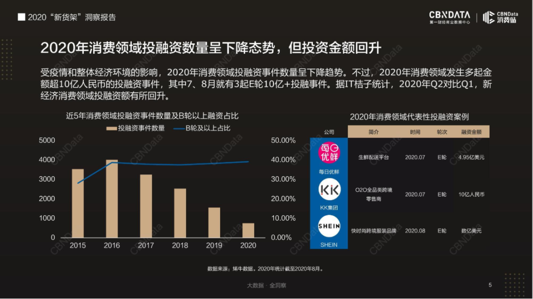 中国新消费品牌的诞生,比以往任何时候都要快速。据CBNData了解,2019年线上新品牌的数量对比2017年,增长了2.49倍。资本也用真金白银对消费领域表现出了信心。根据烯牛数据的统计,2020上半年消费领域发生了多起融资金额超10亿的投融资事件。