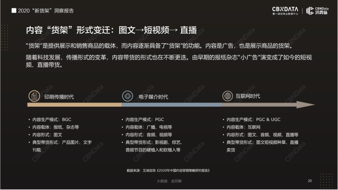 内容货架其实已经存在很久了。在早期的印刷时代,它存在于报纸、杂志的中缝、插页里。随着移动互联网的发展,存在于各大社交平台的内容,无论是图文、短视频还是直播,都逐渐为消费者们所接受。它们为消费者创造了新的消费场景,也正在影响消费者的消费决策。