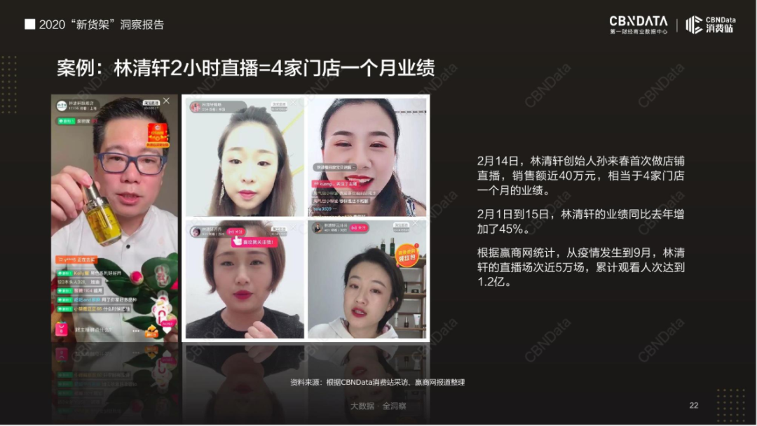 今年2月初,林清轩创始人孙来春发全员信表示,公司的现金流可能最多撑2-3个月。于是,孙来春尝试在淘宝直播进行店铺自播,第一场就卖了40万。虽然这个数字,跟大主播比起来差距甚远,但这个销售额已经抵得上林清轩4家门店1个月的业绩。如今,林清轩也让更多线下门店导购加入到直播中。