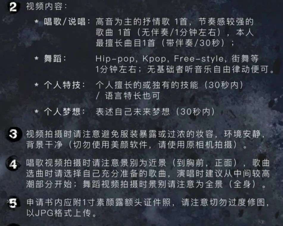 根据染色体娱乐集团发布的信息来看,张艺兴的练习生招募计划面向全球,整体由线上初选、线下面试、正式培训体系三个部分组成。