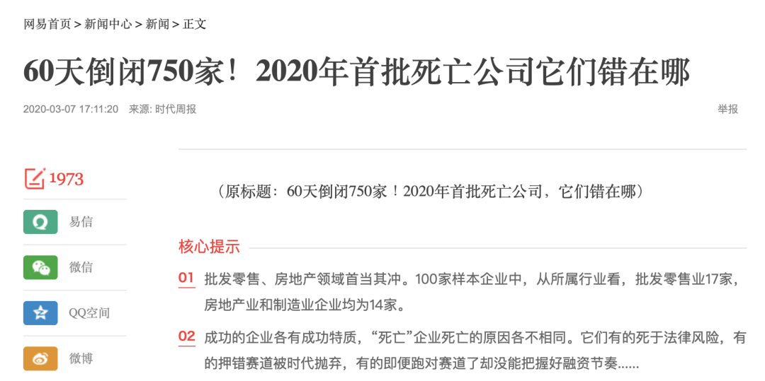 首先,公告将「公司倒闭」、「员工失业」与巨额损失挂钩,这没问题:根据《时代周报》的报道,自2020年元旦至2020年3月,已有超过750家企业发布破产公告,经营不善选择破产也是人之常情。但问题在于这篇公告试图将「巨额损失」与消费者正常的购买行为挂钩——因为你不退款,所以我们有巨额损失,才有后续的破产、倒闭和失业。