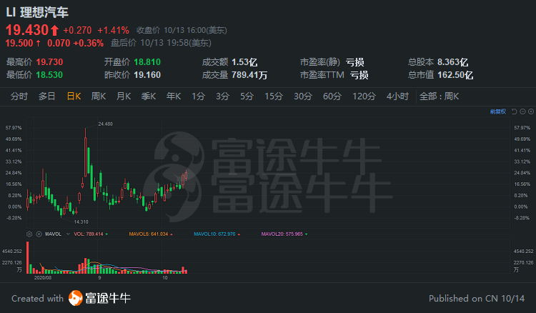 理想汽车盘前一度涨超2%。自9月下旬起,理想汽车股价已升22.19%。