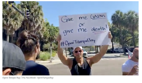 美国健身爱好者为了号召复工,街头抗议、集体请愿。