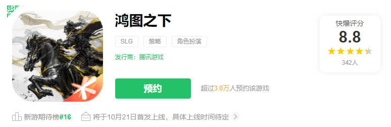 值得注意的是,这两款头部产品都选择了国内SLG市场中颇为热门的“三国”题材,“三国题材+地缘玩法”这个组合似乎成为了近年国内SLG市场的“财富密码”。但随着近日《鸿图之下》官宣定档10月21日,国内地缘玩法SLG头把交椅的竞争名单也随之增加到3个。这3款产品不仅是目前SLG市场上最具代表性的“顶峰之作”,他们背后更是目前国内最有实力的三家大厂:网易,阿里以及腾讯。