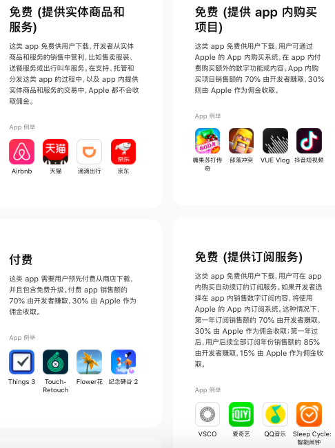 苹果公司在其官网中强调,与所有公平市场一样,开发者可在一系列价位中自主选择定价。只有当数字商品或服务是通过 App 交付时,才会向开发者收取佣金。