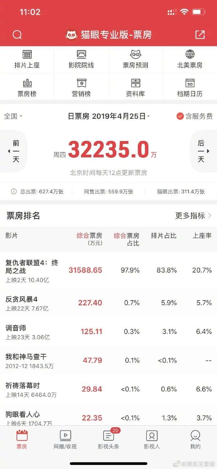 《复仇者联盟4》排片占比高达83.8%