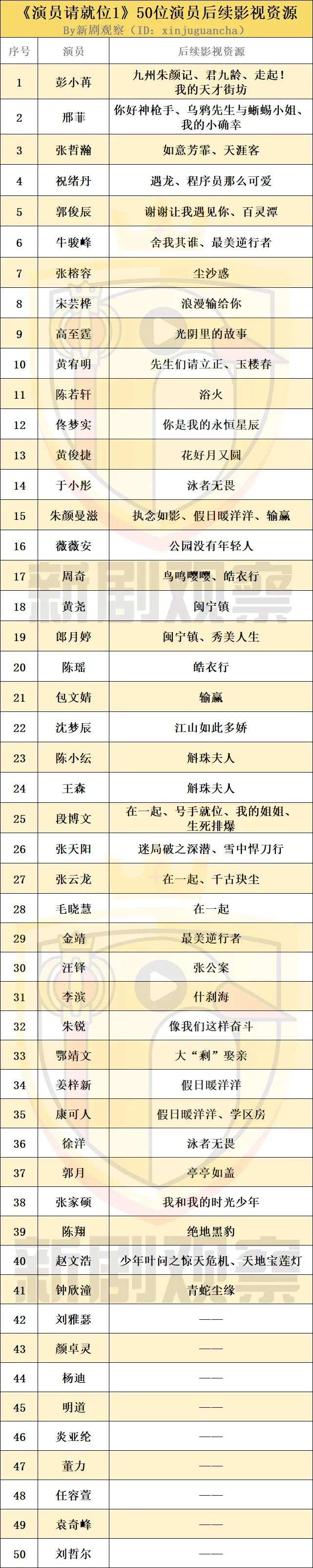 整体来看,50位选手中,45位选手的后续资源处于原地踏步状态,5人遭遇了资源降级。