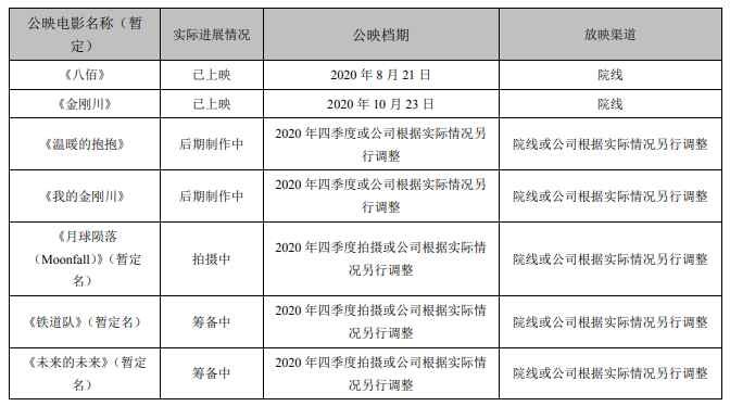 万达电影表示,公司下属600余家国内影院停业近半年,虽然自7月20日起已恢复营业,但复工初期国内疫情防控措施仍较为严格,影院上座率及卖品销售需逐渐放宽,新片供应和观众观影信心也需逐步恢复,全国电影票房尚未能恢复至正常水平。另外,境外疫情仍较为严重,下属澳洲院线营业收入大幅下滑;公司主投主控的电影均未能如期上映。