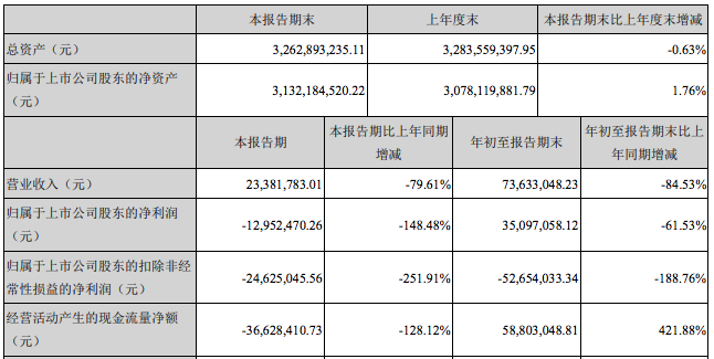 第三季度,华录百纳实现营业收入2338.18万元,同比下降79.61%;归属于上市公司股东的净利润为亏损1295.25万元;归属于上市公司股东的扣除非经常性损益的净利润为亏损2462.5万元。
