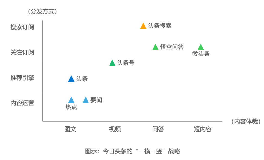 以今日头条为例,其以“一横一竖”的发展战略持续创新,通过丰富的内容体裁与多样化的分发方式,积极探索业务增长点。