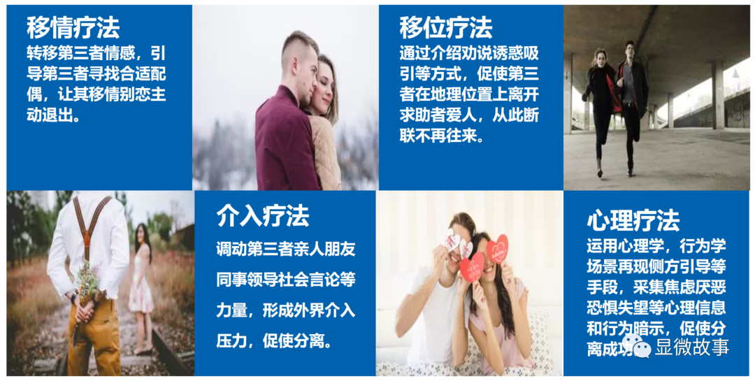 劝退“小三”,通常有移情、离间、施压、利诱等几种方法。
