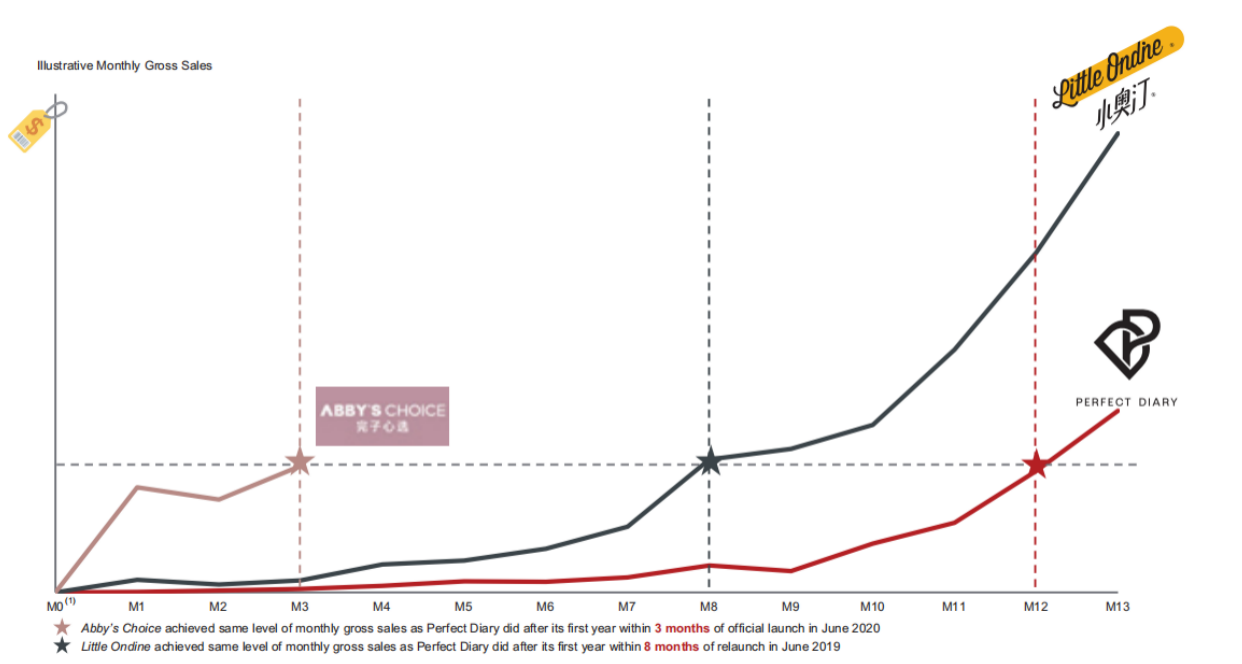 逸仙电商三大品牌2020年增长情况,图片来自招股书