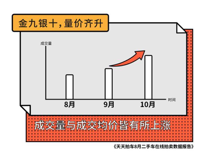 近日,二手车拍卖平台天天拍车发布了《10月二手车在线拍卖数据报告》。报告显示,平台9月、10月的成交量及成交均价皆明显上涨,车辆置换需求被进一步激发。