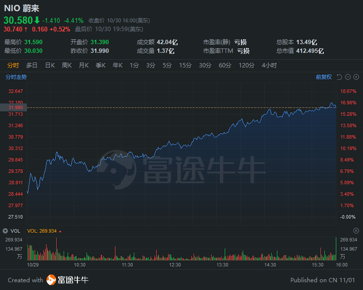1)蔚来大涨16%创历史新高!量产车单月下线首次突破5000台