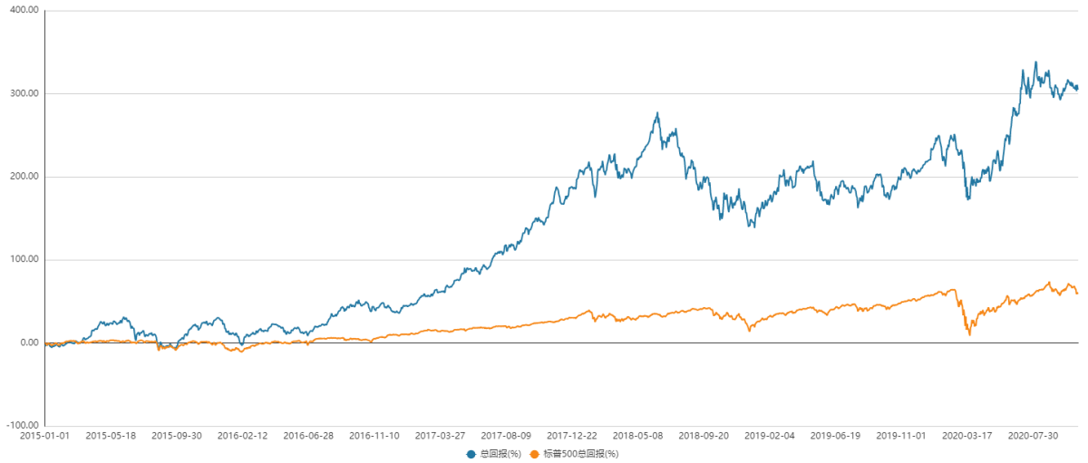 2015年1月1日以来中概股等权重指数上涨304.85%,跑赢标普500指数,相对回报率为246.03%。