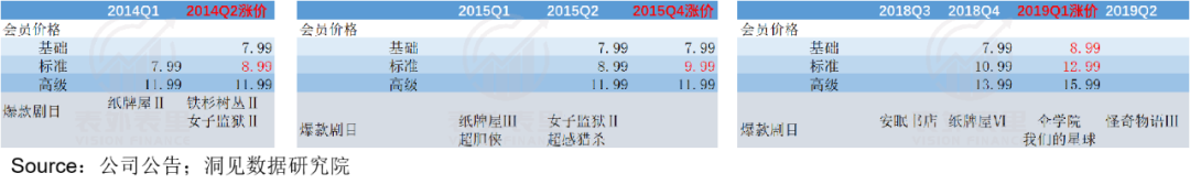 根据统计,2014Q2、2015Q4、2019Q1涨价前,奈飞爆款剧集的储备数量基本在3-5款。