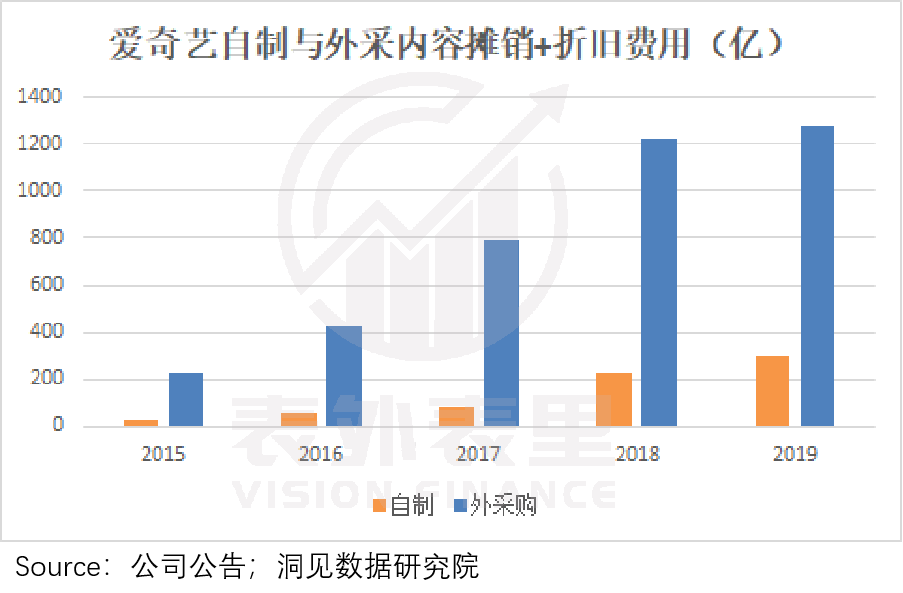 从费用支出看,2018年开始,爱奇艺自制内容摊销费用明显提升,外采费用虽然依然很高,但增幅较小。