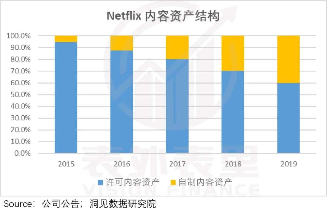 根据财报,奈飞2019年的自制剧资产占比已达到40%,相比2015年5.6%的占比,买剧逻辑已实现大幅扭转。