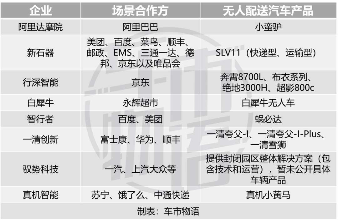 互联网大厂一定能孵化出一至两家,如阿里小蛮驴与美团无人配送平台;零星初创企业或许也能自己闯出一条路,如具备大规模低成本量产能力的新石器。
