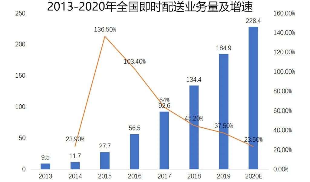 梳理2010年以来的数据可以发现:近5-10年以来,以上两大业务的订单量均呈现高速发展趋势,预计2020年两者总和将突破1千亿单,并且未来5-10年仍具备高速发展(年复合增长率20%左右)的发展潜力。